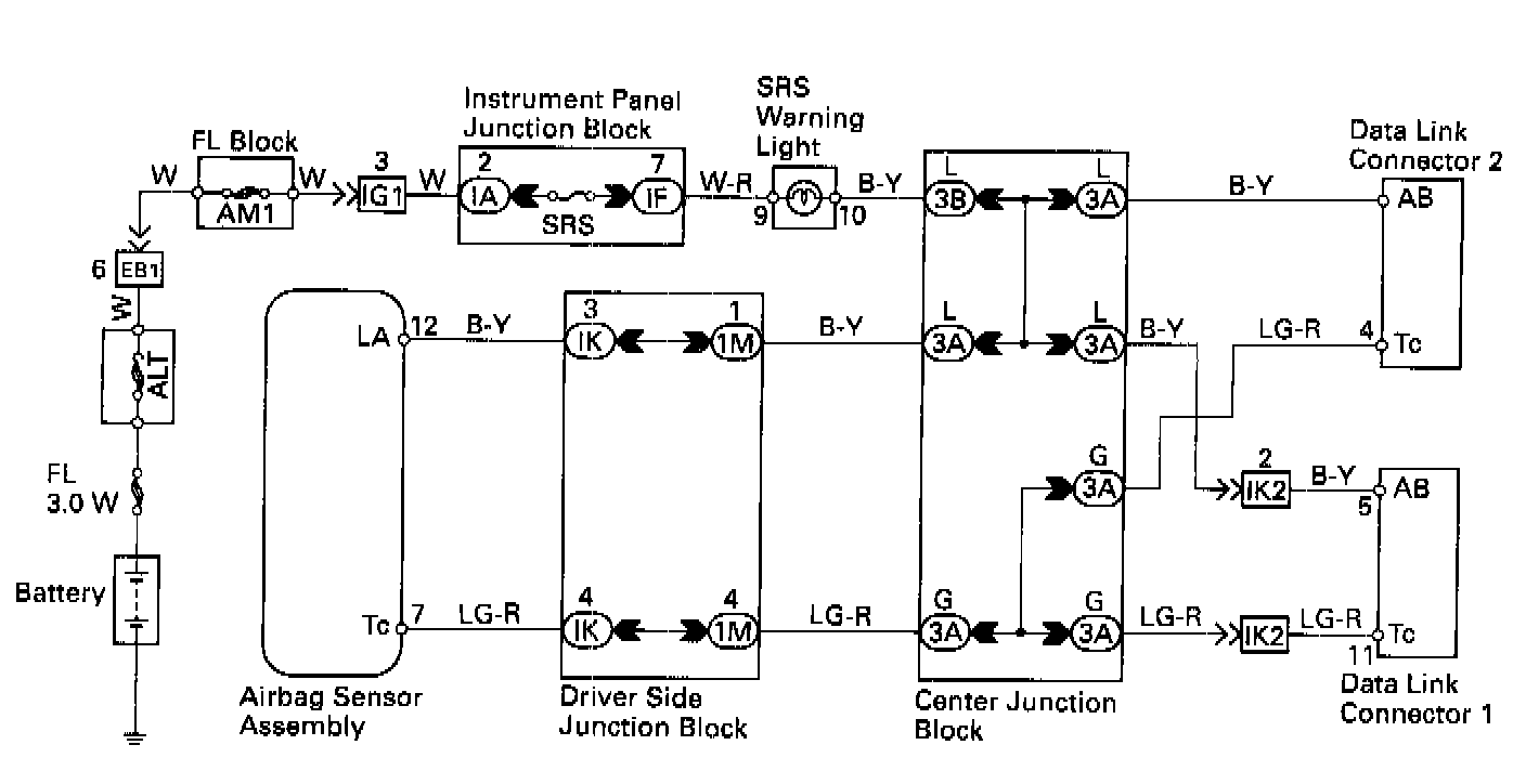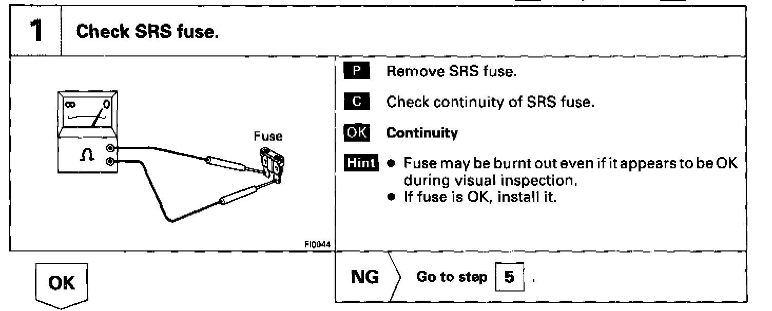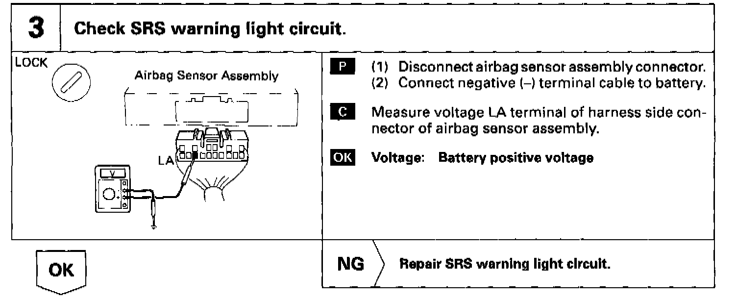SRS Warning Light Circuit Malfunction (Not on - Ignition on)