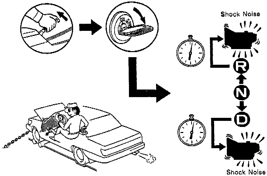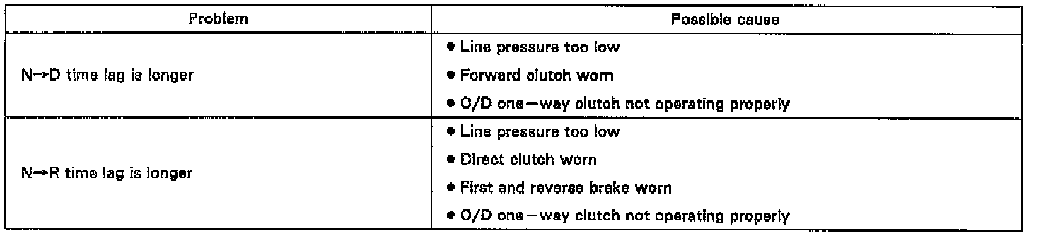 TIME LAG TEST- When the shift lever is shifted while the engine is idling, there will be a certain time lapse or lag before the shock can be felt.