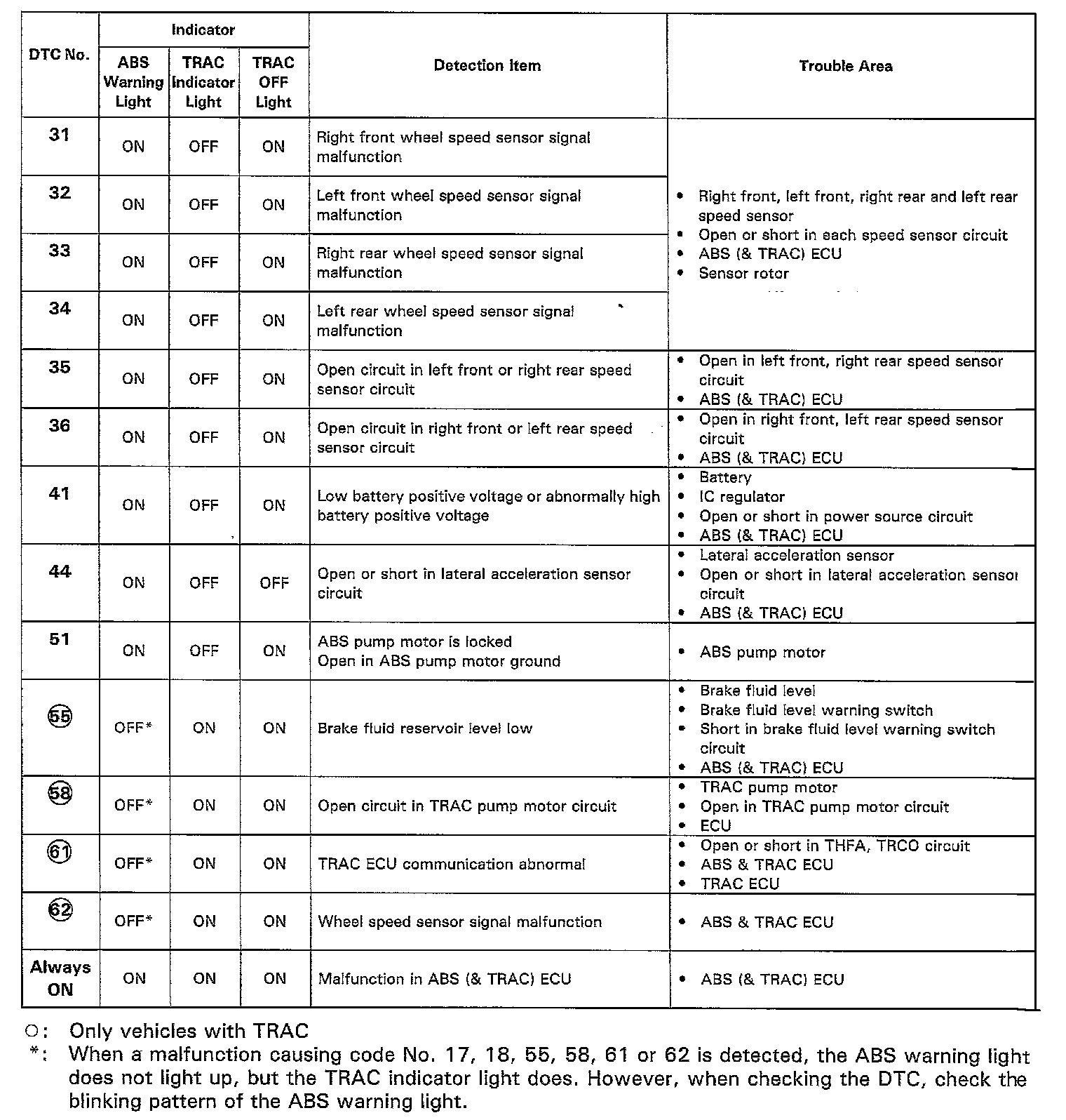 If a malfunction code is displayed during the DTC check, check the circuit listed for that code. For details of each code, see Trouble Code Diagnostic Charts.