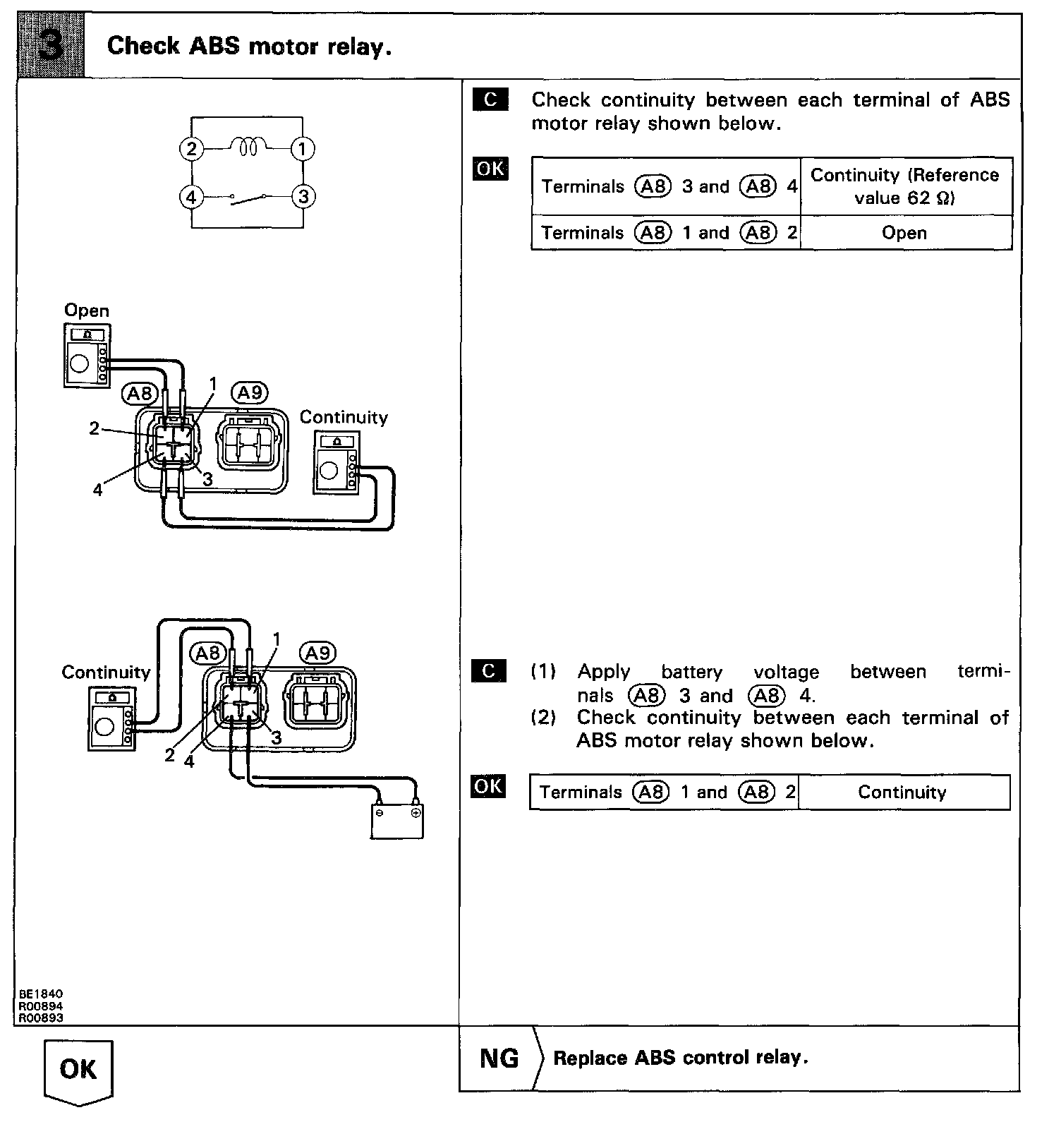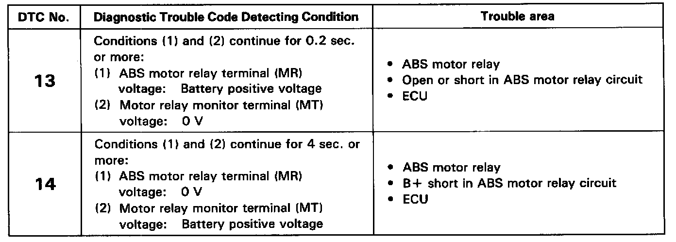 DTC 13,14 ABS Control (Motor) Relay Circuit