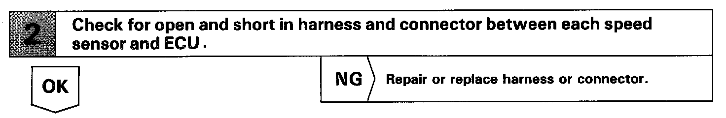 Fail safe function: If trouble occurs in the speed sensor circuit, the ECU cuts off current to the ABS solenoid relay and prohibits ABS control.