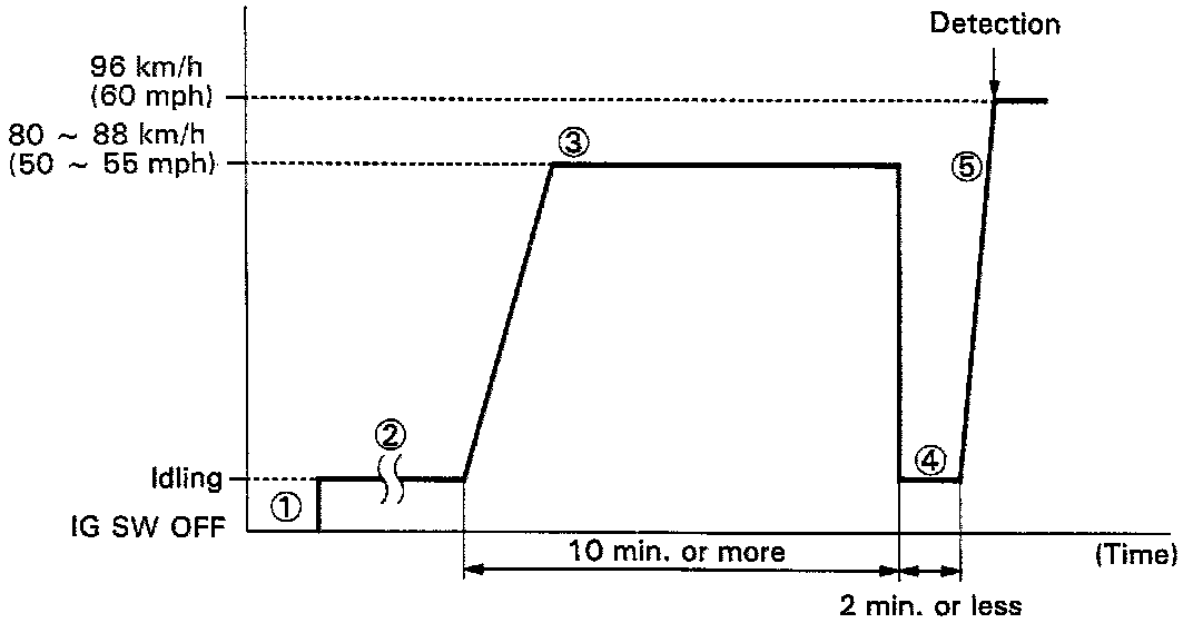 (3) Drive the vehicle at 80 ~ 88km/h (50 ~ 55mph) for 10 min. or more.