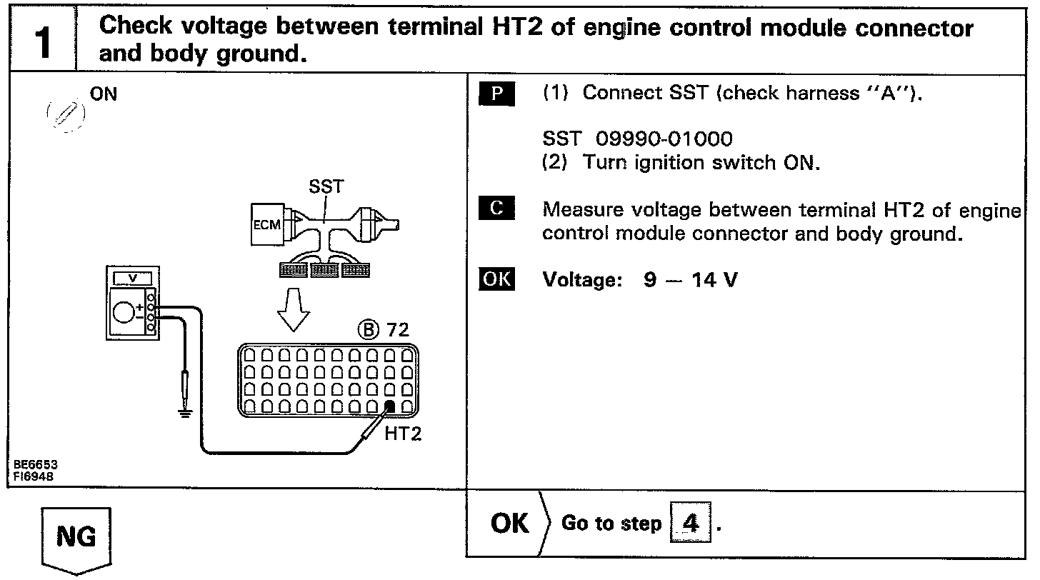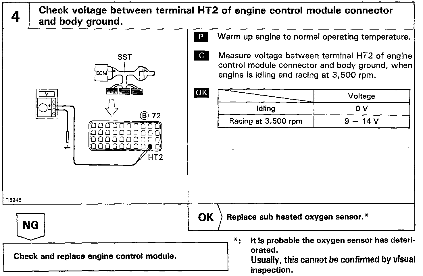 Malfunction: Open or Short in Sub Heated Oxygen Sensor