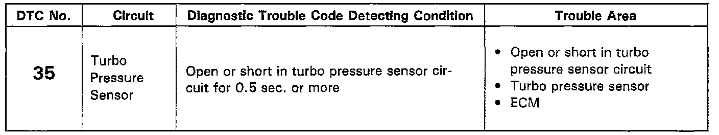 HINT: DTC 35 is used to indicate malfunctions in the turbo pressure sensor circuit or BARO sensor circuit.