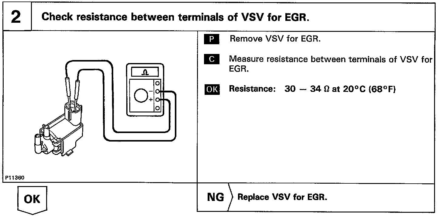 If even one of the following conditions is fulfilled, the VSV is turned ON by a signal from the ECM. This resuits in atmospheric air acting on the EGR valve, closing the EGR valve and shutting off the exhaust gas (EGR cut-OFF).