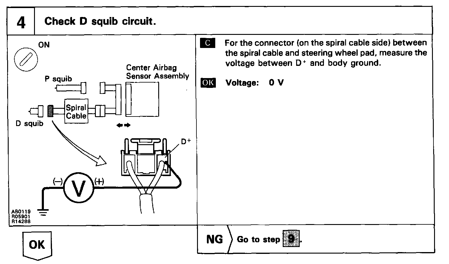 For details of the function of each component, see FUNCTION OF COMPONENTS. DTC 12 is recorded when a B + short is detected in the squib circuit or the front airbag sensor circuit.