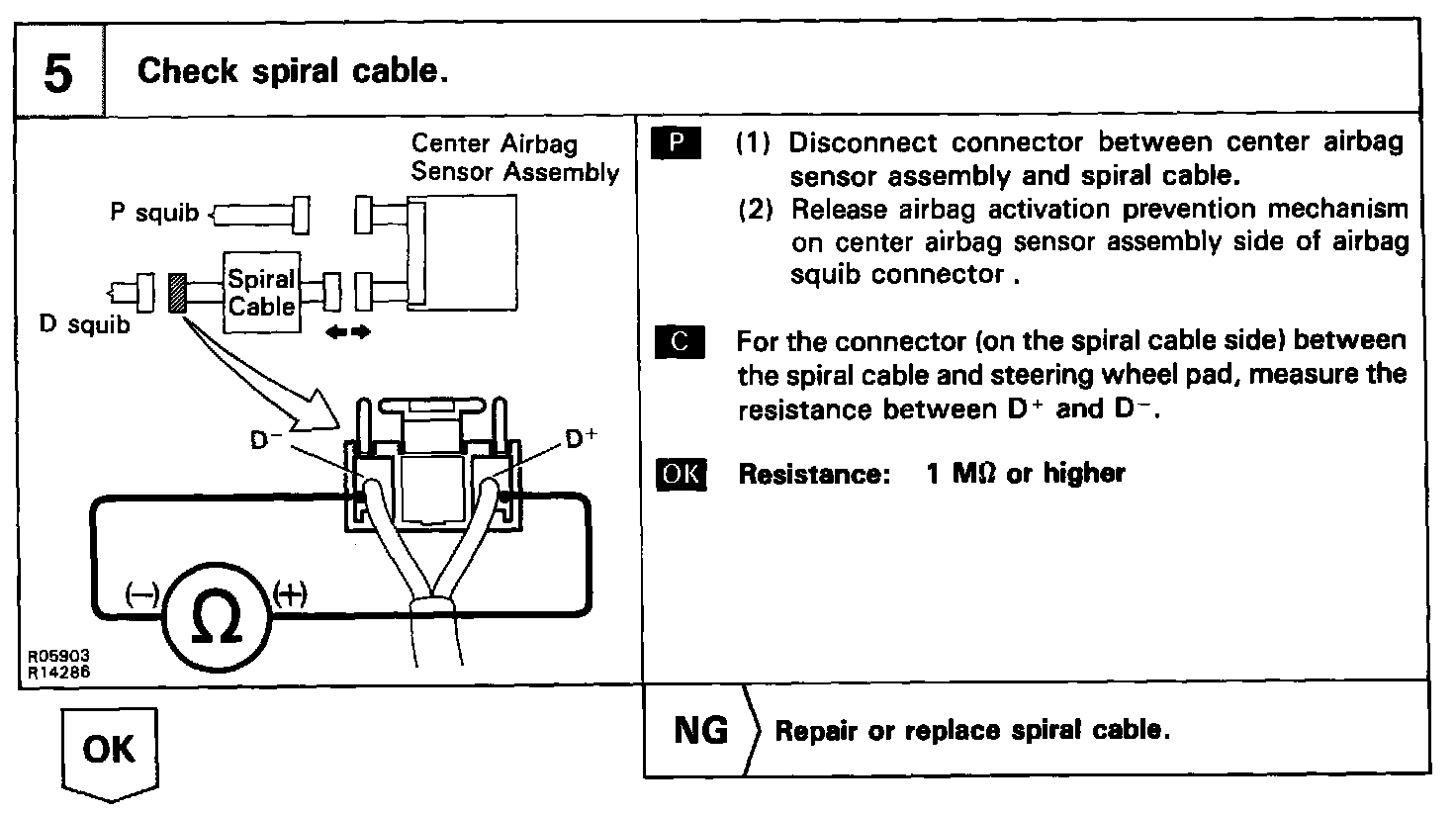 The squib circuit consists of the center airbag sensor assembly, spiral cable and the steering wheel pad. It causes the airbag to deploy when the airbag deployment conditions are satisfied.