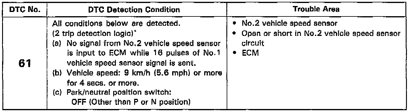 DTC 61 No.2 Vehicle Speed Sensor Circuit