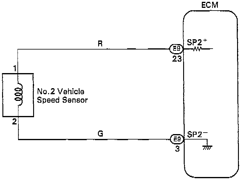 If the No.2 vehicle speed sensor malfunctions, the ECM uses input signals from the No.1 vehicle speed sensor as a back-up signal.