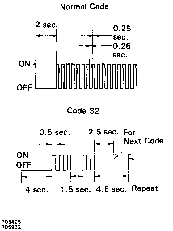 As an example, the blinking patterns for normal code and code 32 are shown.