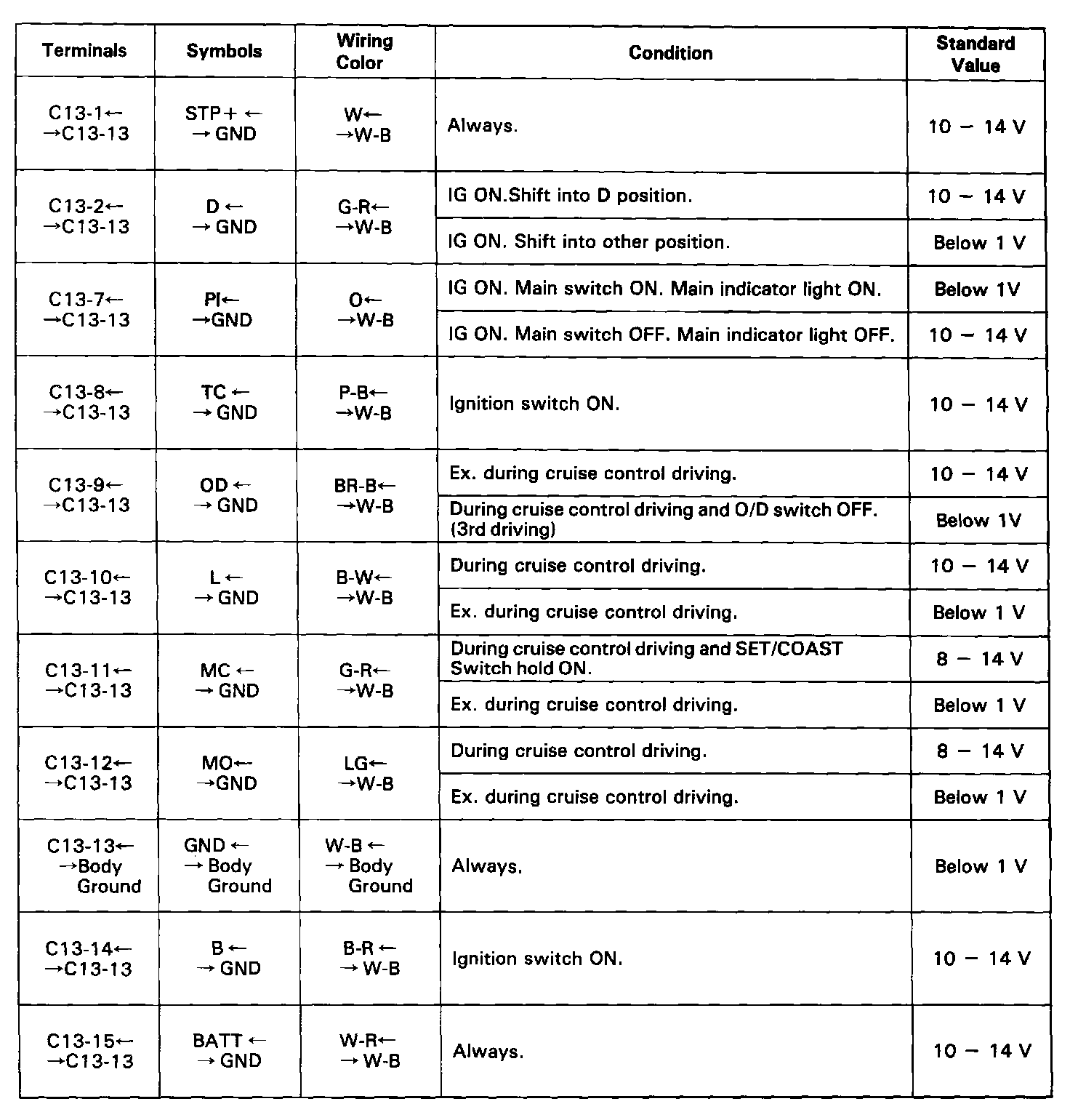 STANDARD VALUES OF ECU TERMINALS