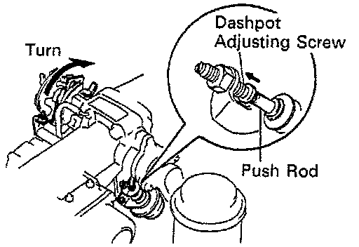 - Turn the throttle linkage until the dashpot adjusting screw starts to separate from the push rod. Then keep the throttle linkage at that position.