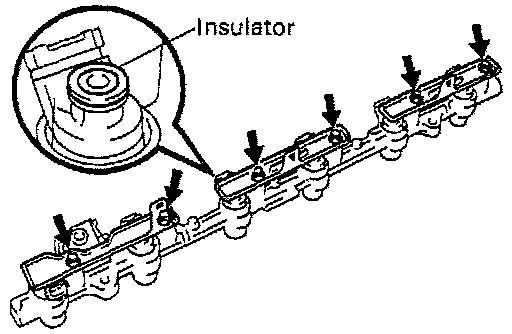 - Remove the 6 bolts, 3 injector holders and 6 insulators.