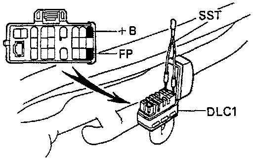 - In the condition above, disconnect the tester probes of SST (wire) from the battery and check the fuel leakage from the injector.