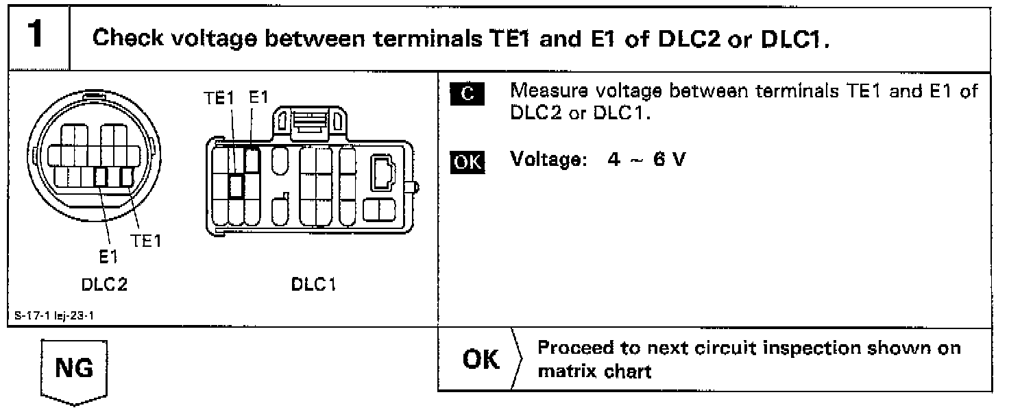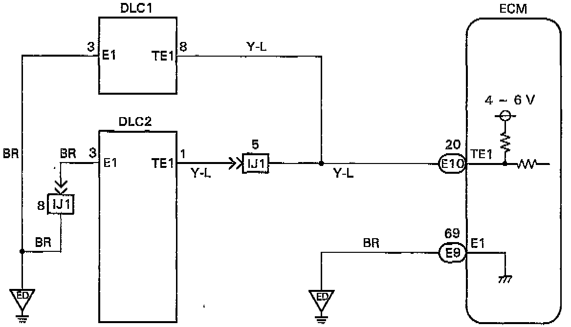 ECM displays DTCs using the O/D OFF indicator light when terminals TE1 and E1 of the