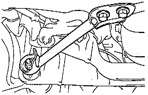 7. Remove shock absorber bracket from lower suspension arm. Remove the two bolts and bracket from the lower arm.