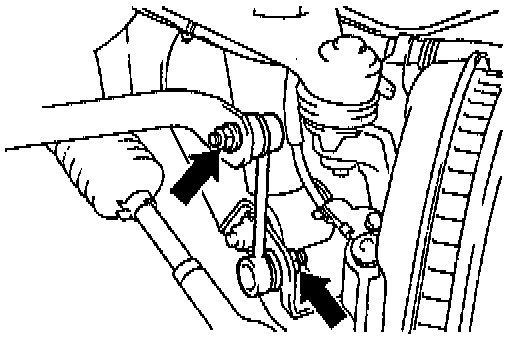 4. Remove both stabilizer bar links. Remove the nuts and both stabilizer bar links from the stabilizer bar and the lower suspension arm.