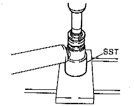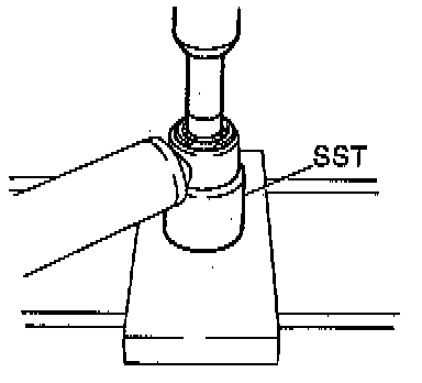 1. Remove bushing. Using Special Service Tool (SST) 09710 - 14013 (09710 - 00021) or equivalent, and a deep socket wrench, remove the bushing.