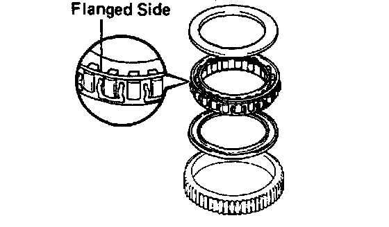 b) Install the one-way clutch into the outer race the flanged side of the one-way clutch facing upward.