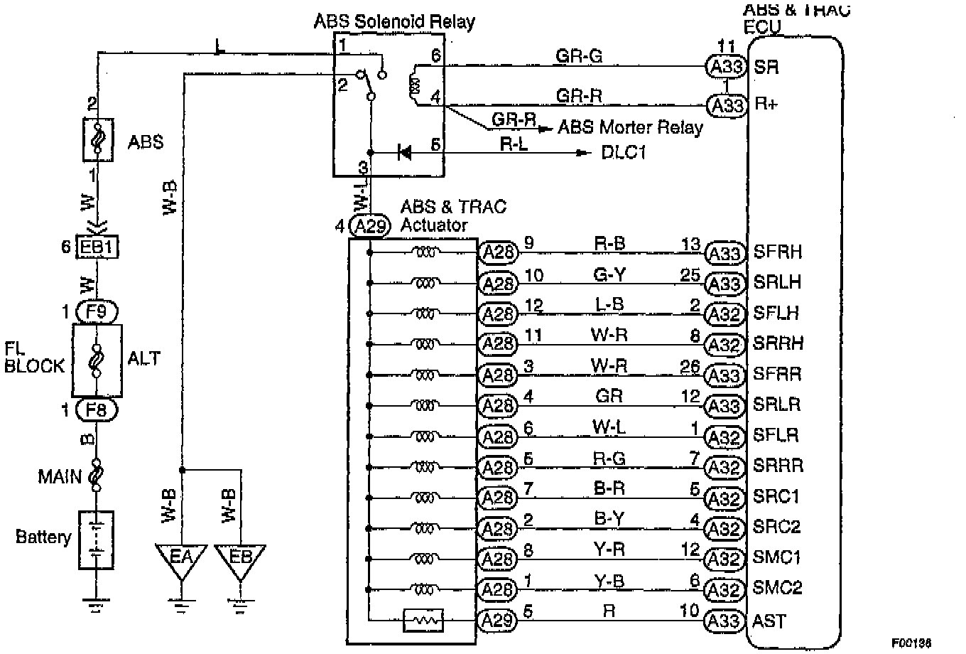 ABS & TRAC Actuator Solenoid Circuit, Wiring Diagram: