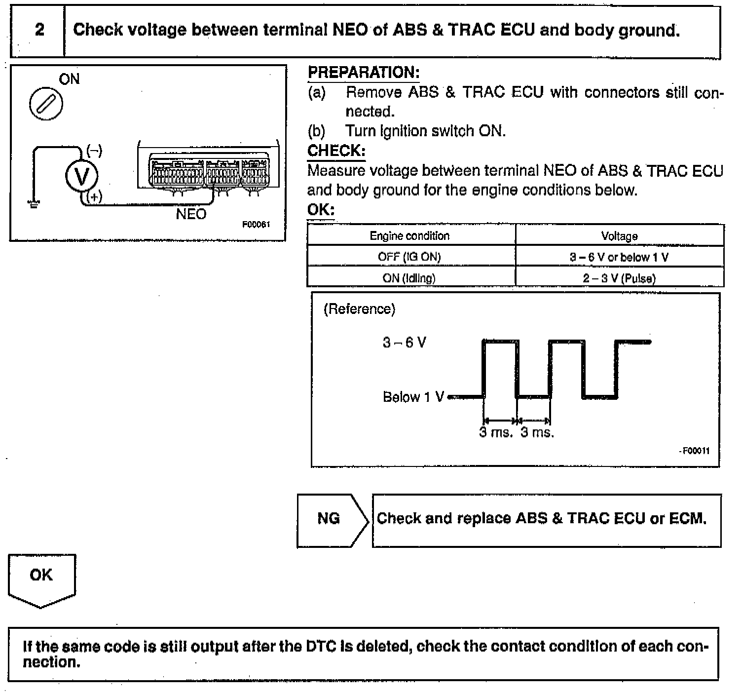 The ABS & TRAC ECU receives engine speed signals (NE signals) from the ECM.