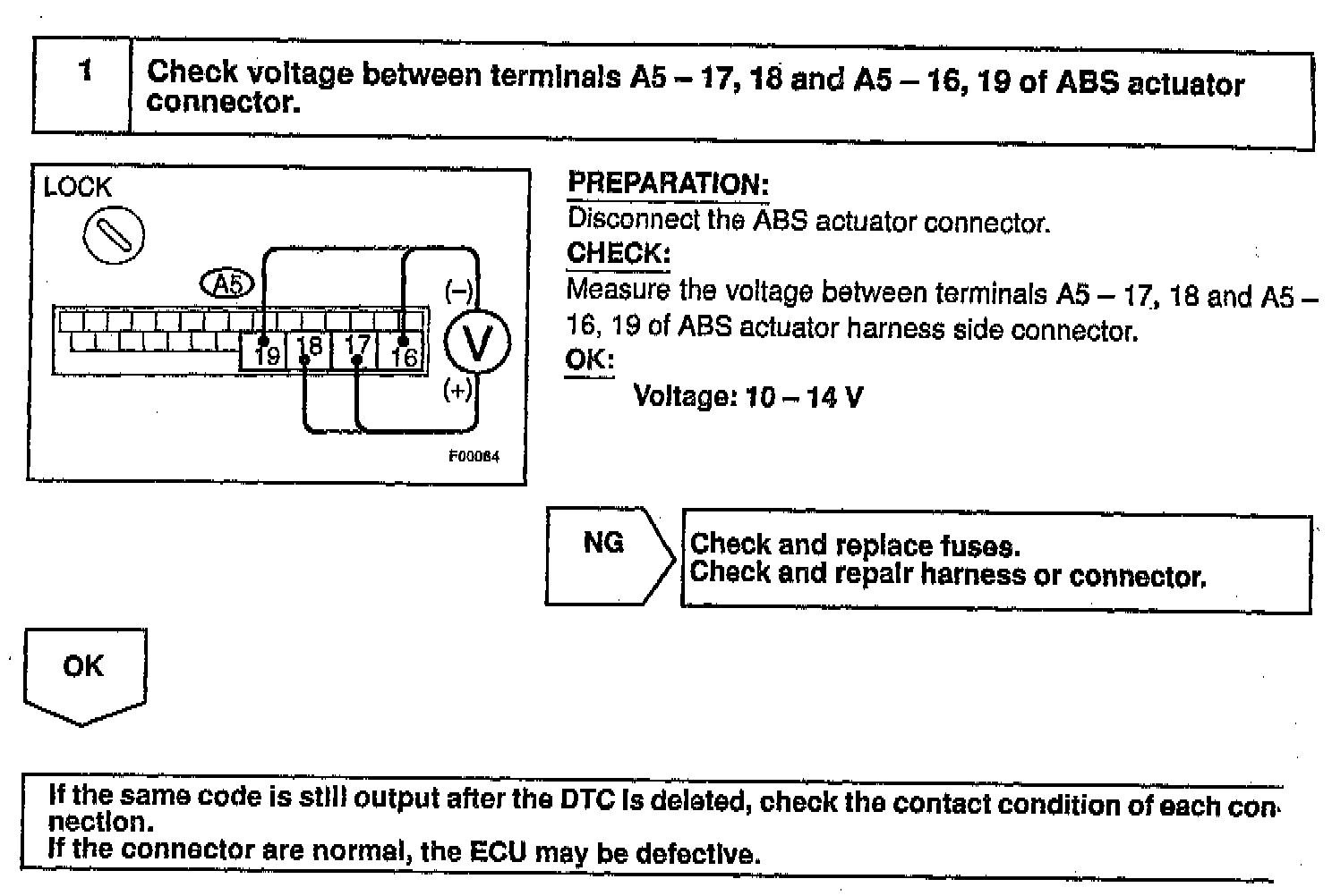 ABS Solenoid Valve Relay Circuit, Inspection Procedure: