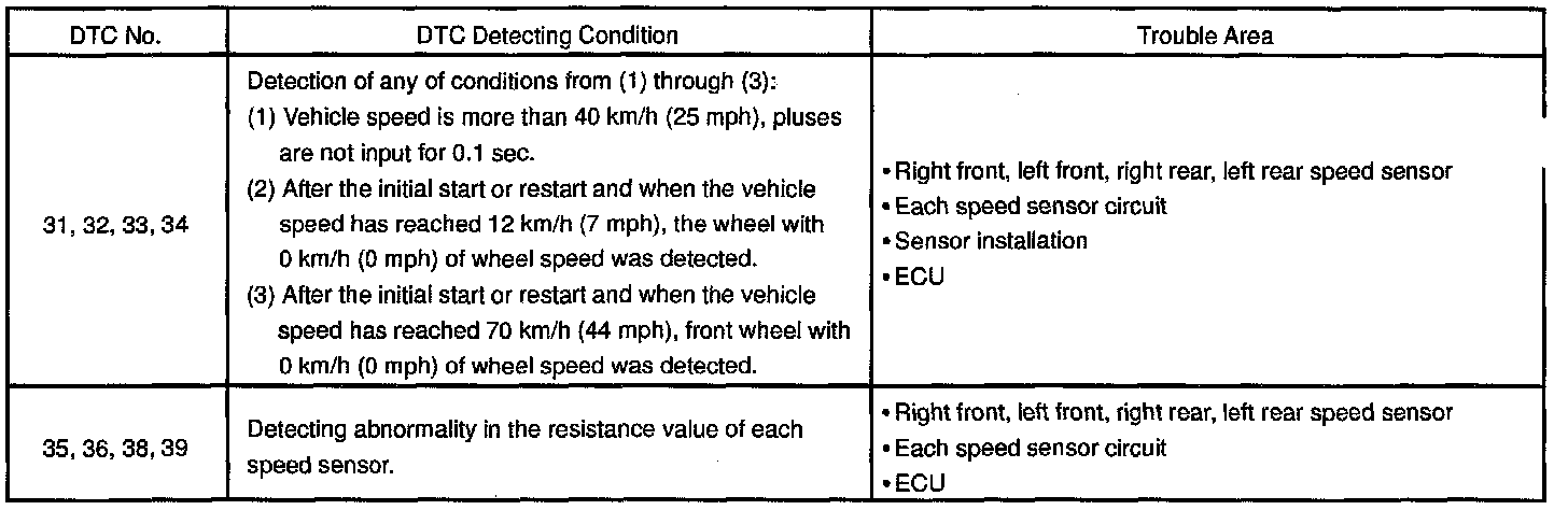 NOTE: DTC Nos.31 and 35 are for the Right Front Speed Sensor.