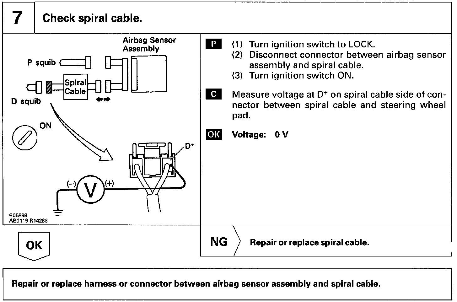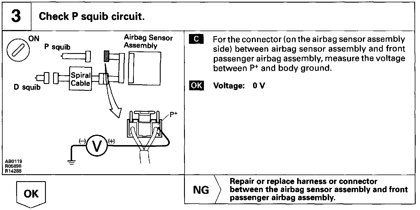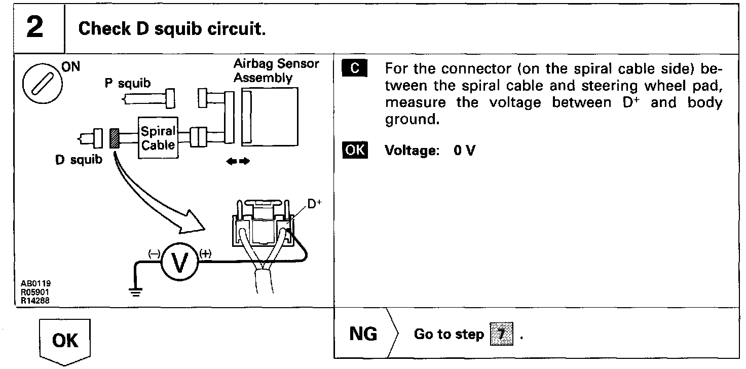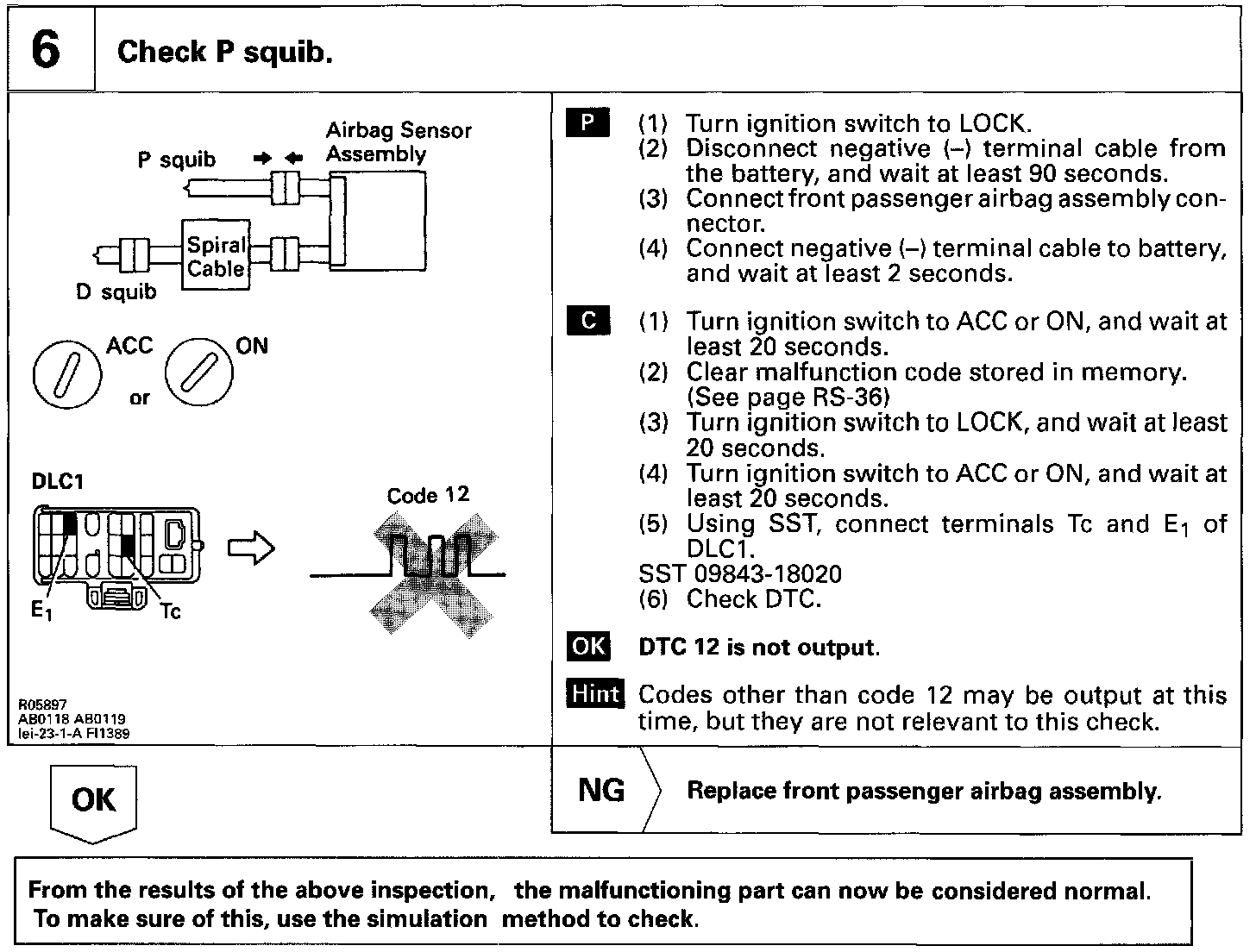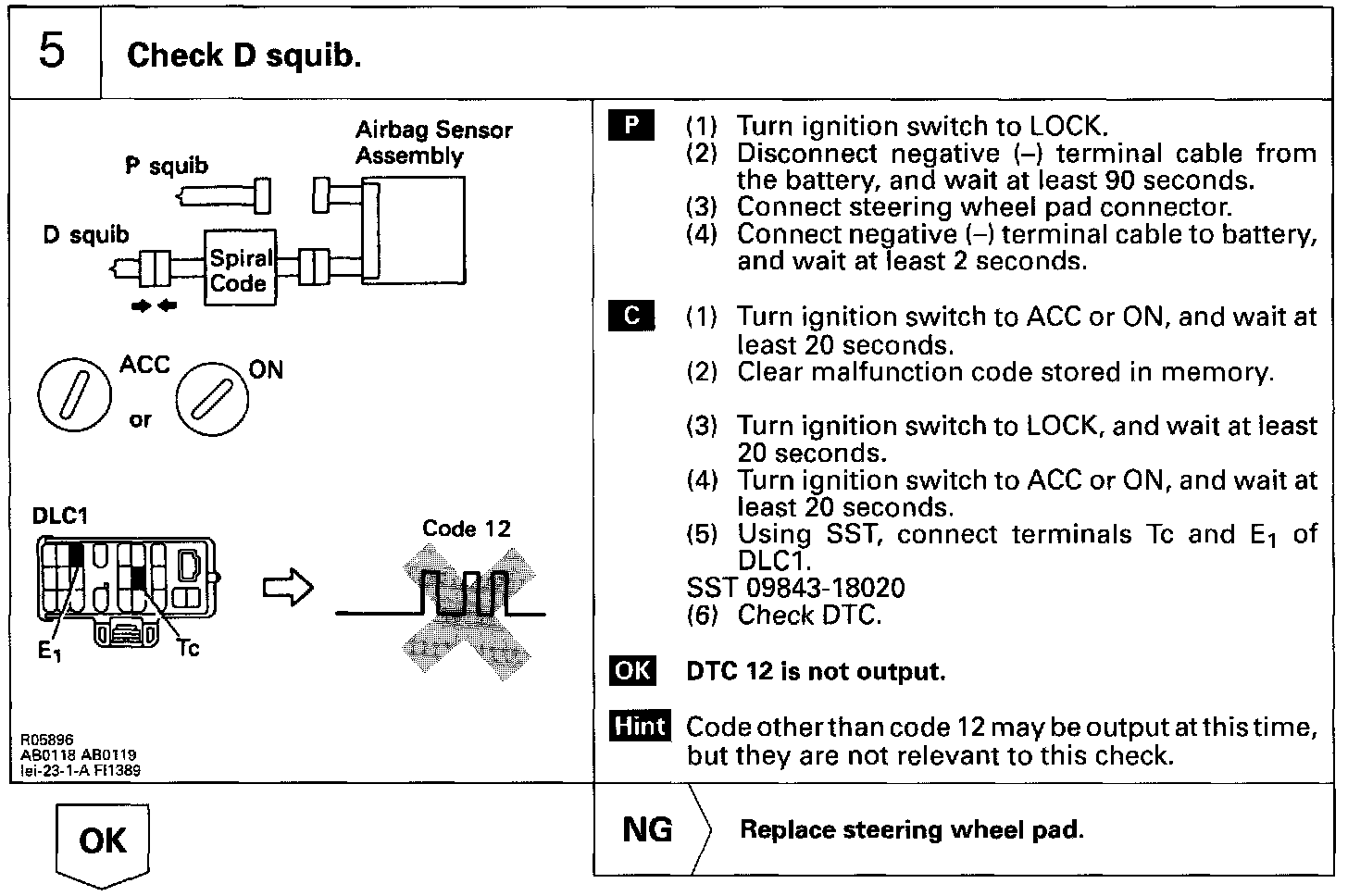 For details of the function of each component, see FUNCTION OF COMPONENTS. DTC 12 is recorded when a B+ short is detected in the squib circuit.