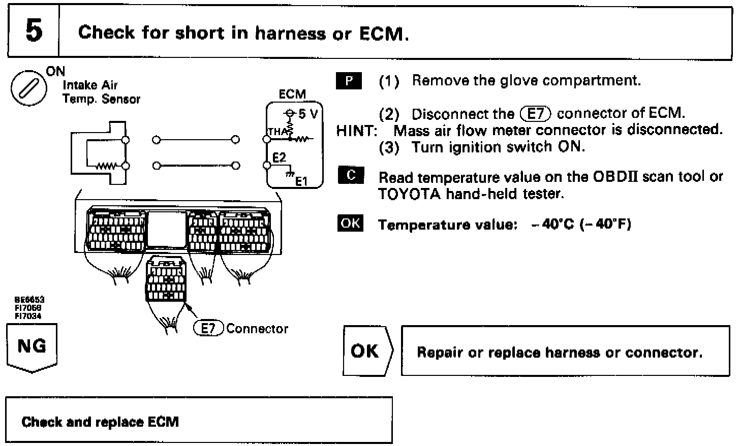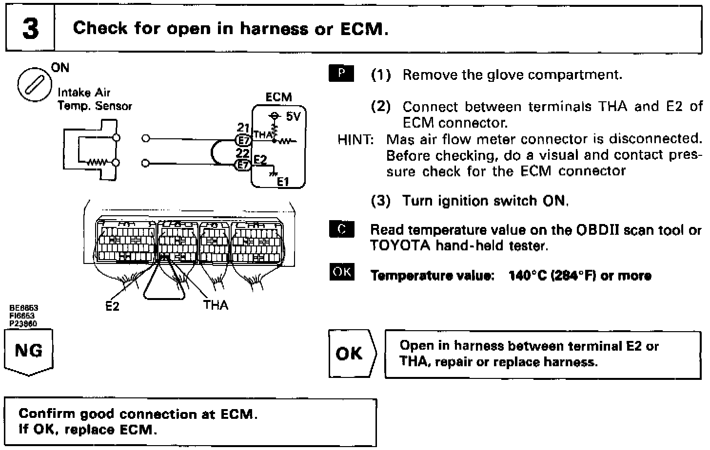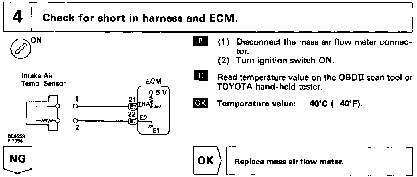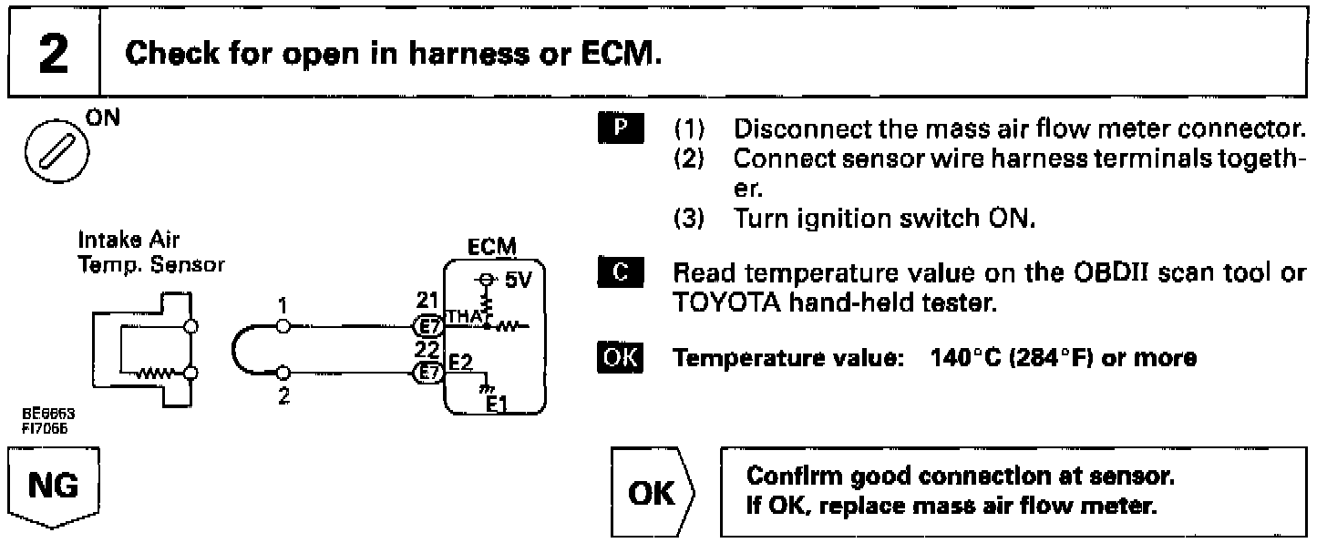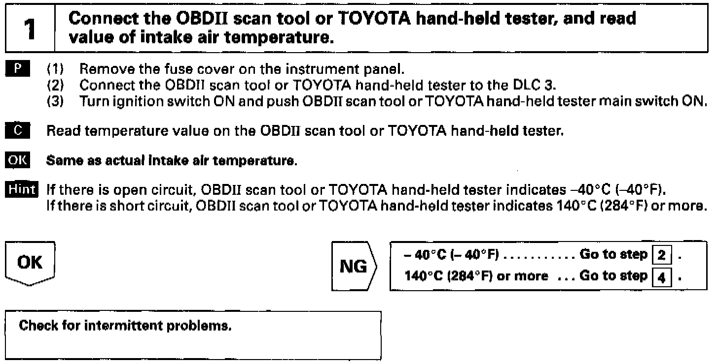 HINT: After confirming DTC P0110 use the OBDII scan tool or TOYOTA hand-held tester to confirm the intake air temperature from "CURRENT DATA".