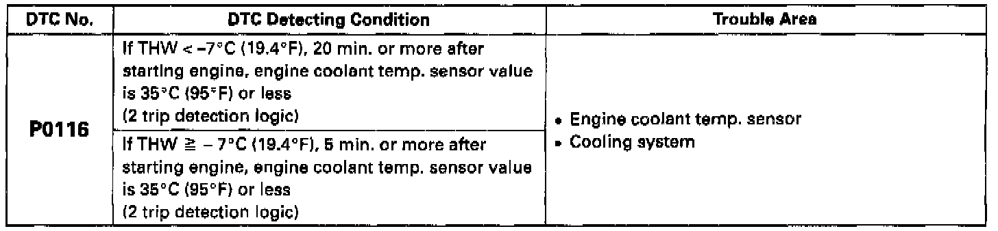 DTC P0116 Engine Coolant Temp. Circuit Range/Performance Problem