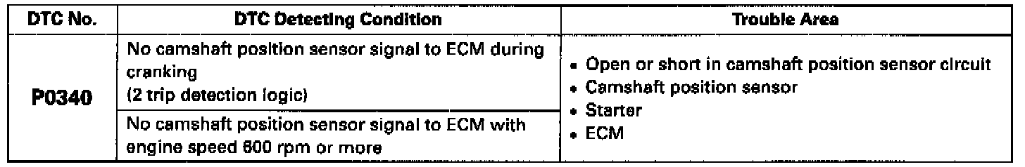 DTC P0340 Camshaft Position Sensor Circuit Malfunction