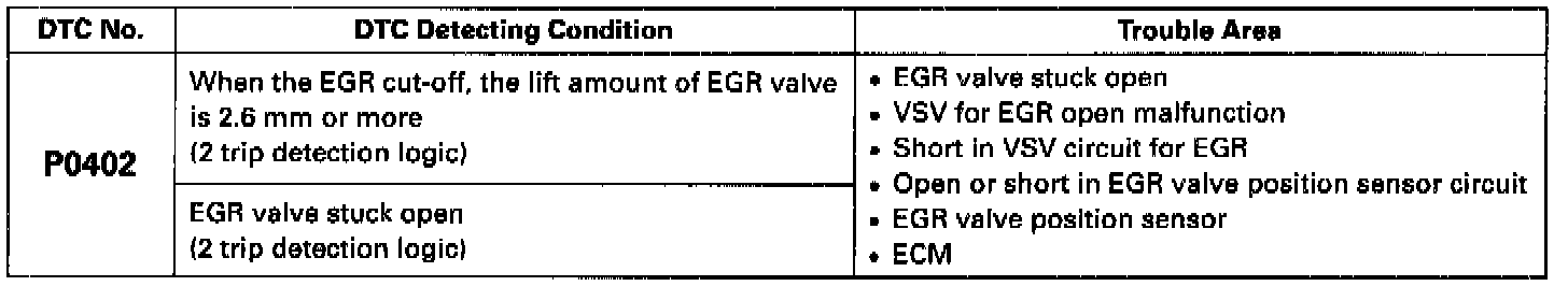DTC P0402 Exhaust Gas Recirculation Flow Excessive Detected
