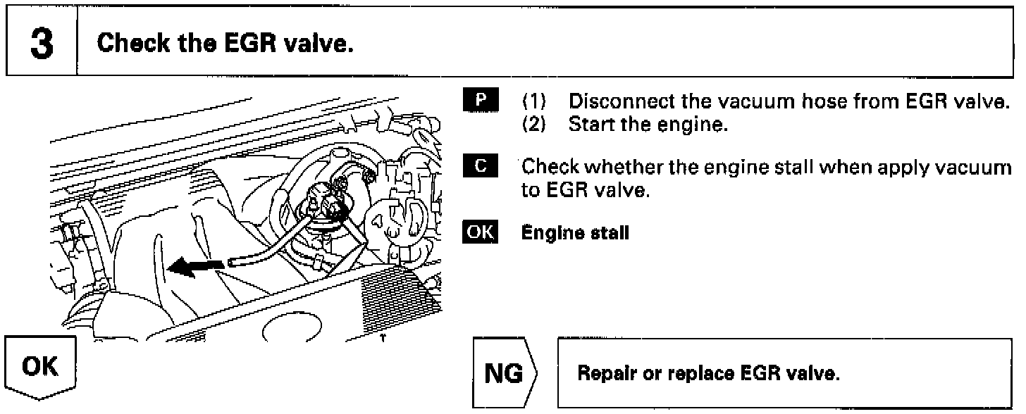 The EGR system recirculates exhaust gas, which is controlled to the proper quantity to suit the driving conditions, into the intake air mixture to slow down combustion, reduce the combustion temperature and reduce NOx emissions.