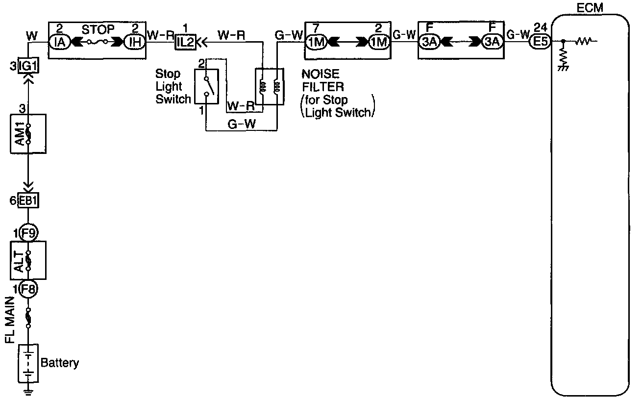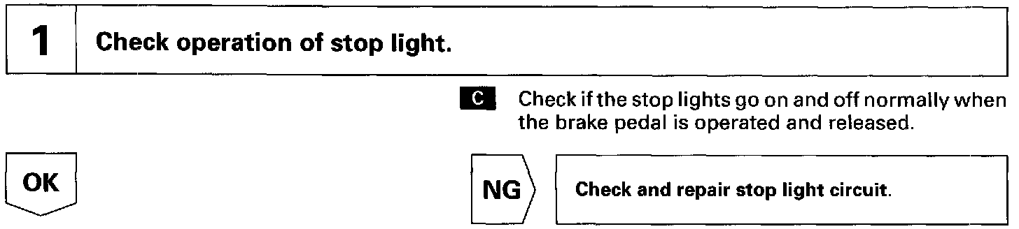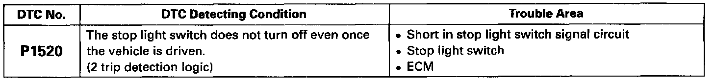 This signal is used to detect when the brakes have been applied. The STP signal voltage is the same as the voltage supplied to the stop lights. The STP signal is used mainly to control the fuel cut-off engine speed. (The fuel cut-off engine speed is reduced slightly when the vehicle is braking.)