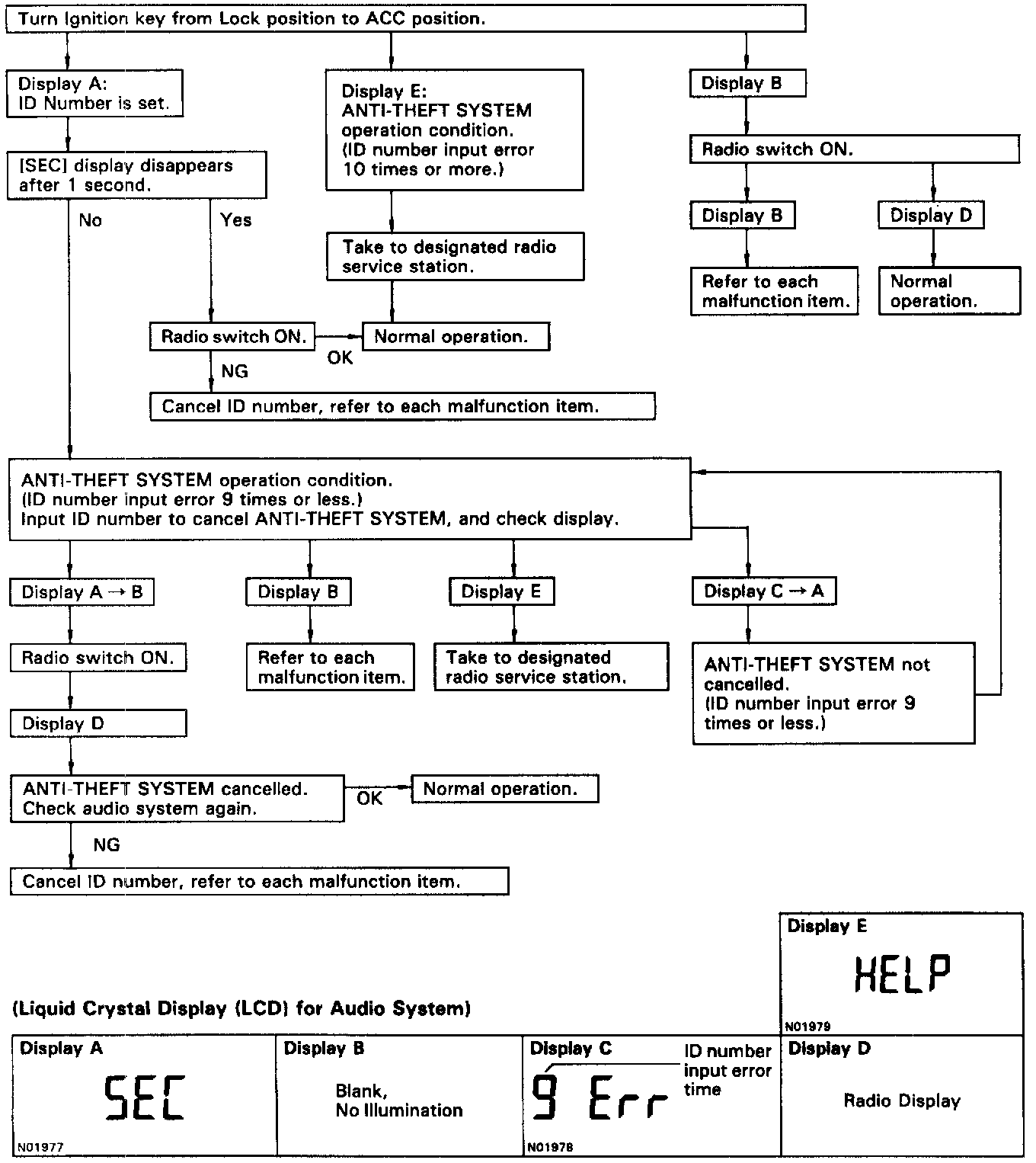 Refer to Owners Manual for operation details of ANTI-THEFT SYSTEM. Or refer to Description and Operation