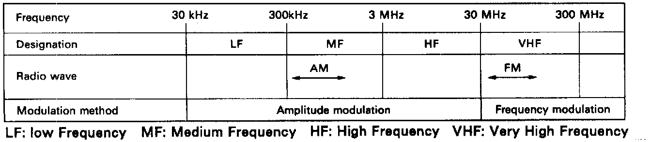 The radio wave bands used in radio broadcasting are as shown in the table.