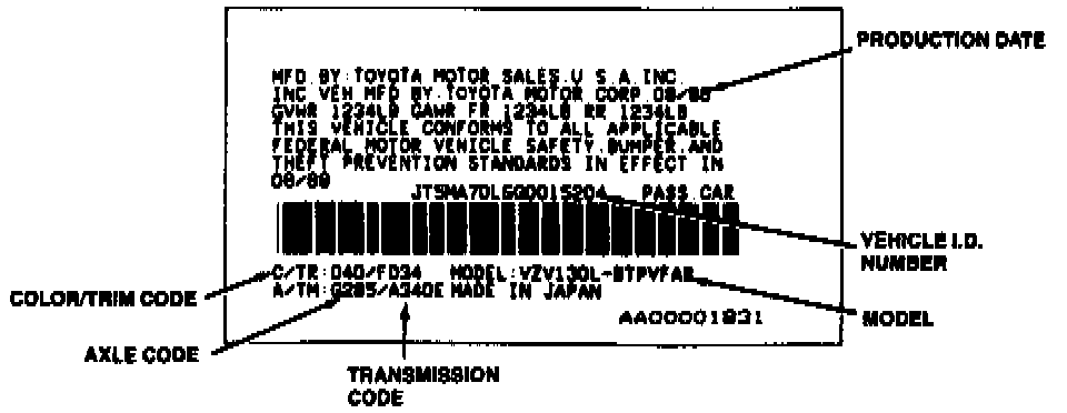 ^ On trucks, Vans and Land Cruisers, the Label is located on the lower part of the driver's door pillar