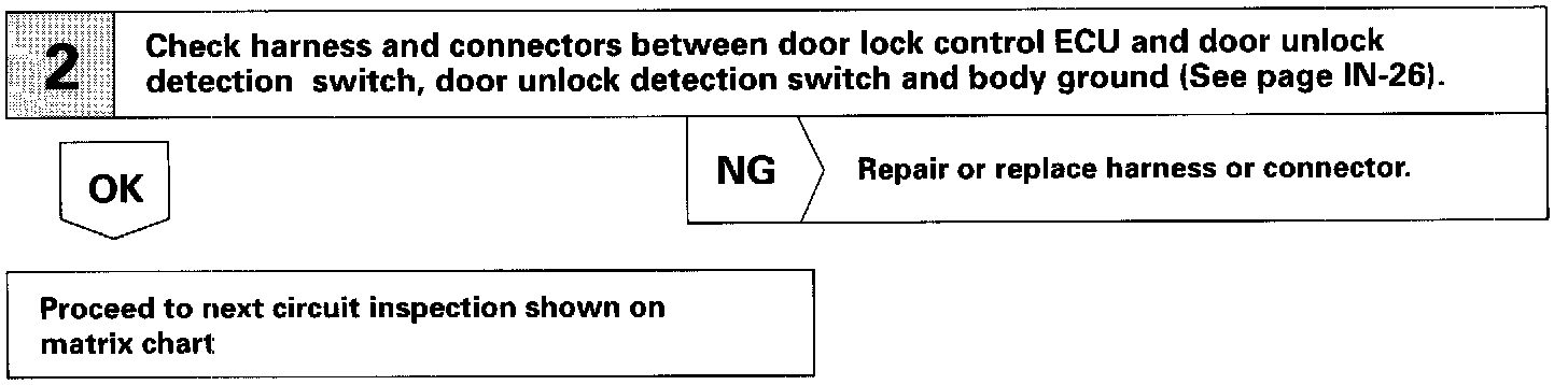 The door unlock detection switch is built in the door lock motor assembly. This switch is ON when the door lock knob is in the unlock position and OFF when the lock knob is in the lock position. The ECU detects the front door lock knob conditions in this circuit. It is used as one of the operating conditions for the key confinement prevention function.