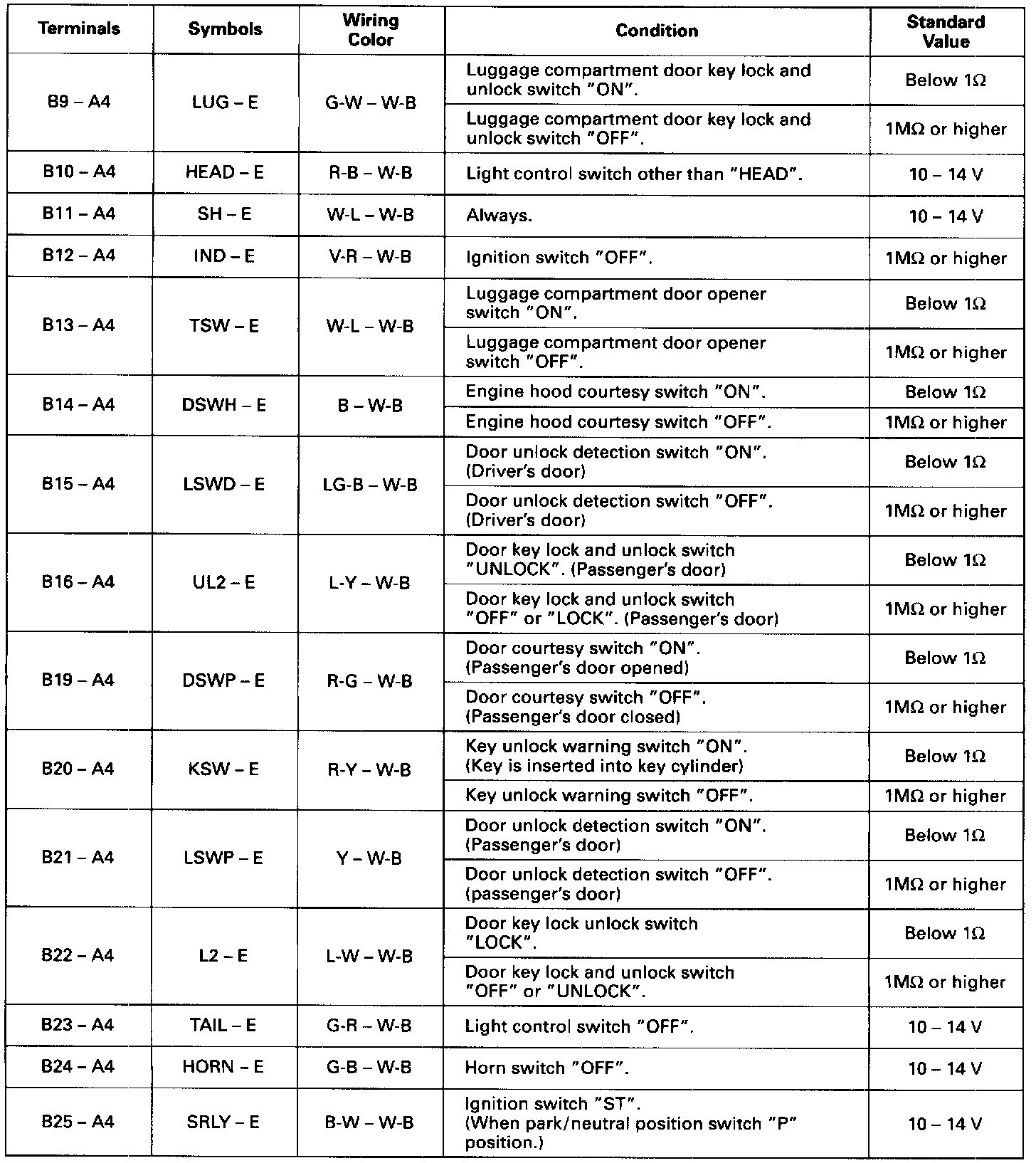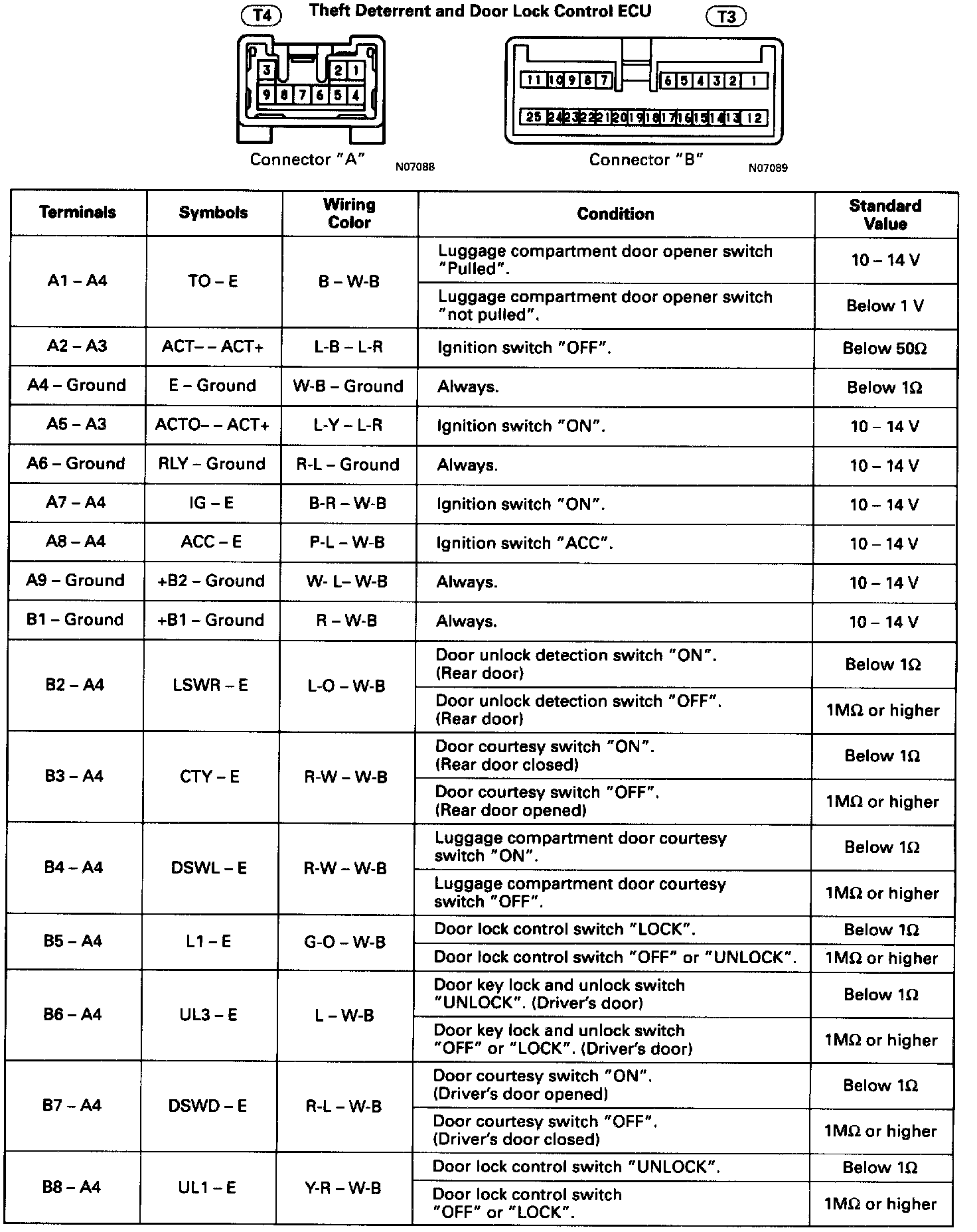 Standard Values of ECU Terminals / With Theft Deterrent System (1 Of 2):