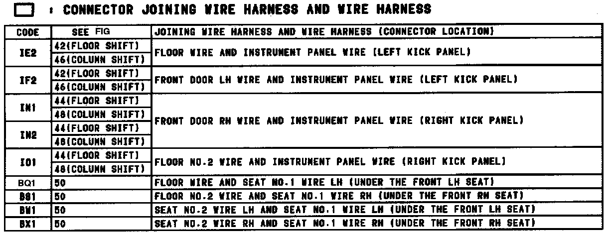 Location Of Connector Joining Wire Harness And Wire Harness (Floor Shift) (Fig 42):