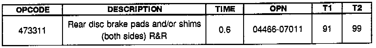 Replacement of brake pad kit and/or shims is limited to correction of a problem based upon customer's complaint and subject to all of the provisions of Toyota Warranty Policy Bulletin P0L94-18, dated October 7, 1994.