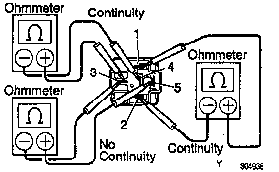 (b) Using an ohmmeter, check that there is no continuity between terminals 3 and 4.