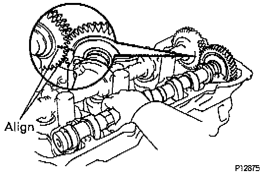 (b) Align the timing marks (2 dot marks) of the camshaft drive and driven gears.