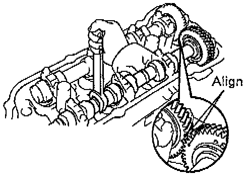 NOTE: When removing the camshaft, make sure that the torsional spring force of the sub-gear has been eliminated by the above operation.