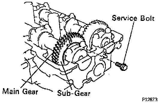 (b) Secure the exhaust camshaft sub-gear to the main gear with a service bolt.