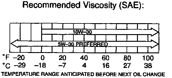 2. Oil grade: API SH, Energy-Conserving II multigrade engine oil or ILSAC multigrade engine oil. Recommended viscosity is as shown in the illustration with SAE 5W-30 being the preferred engine oil.