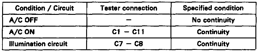 If continuity is not as specified. replace the A/C control lower panel.
