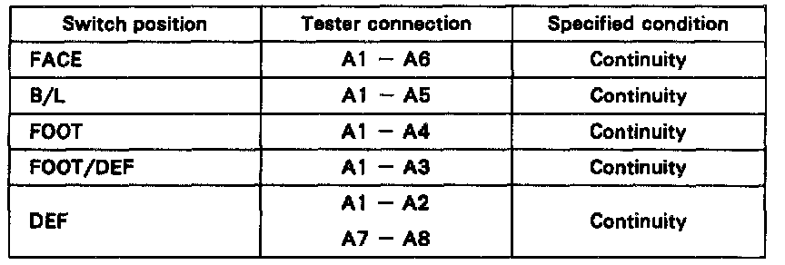 If continuity is not as specified, replace the A/C control upper panel.