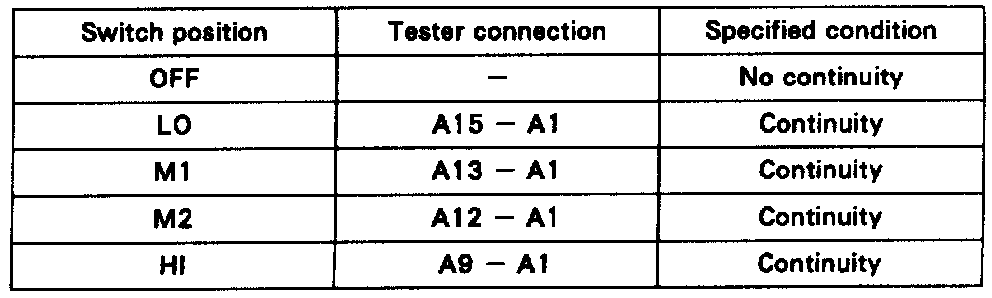 INSPECT BLOWER SPEED CONTROL SWITCH CONTINUITY