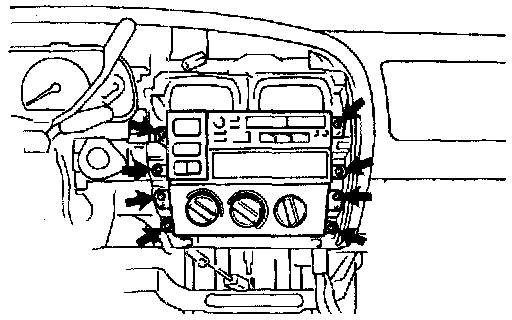 Remove the 6 bolts and the A/C control upper panel from the radio.
